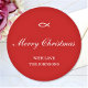 Merry Christmas Custom Text Familienname Red Runder Aufkleber