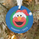 Celebrate the holidays with a smile from everyone's favorite fuzzy red monster! This festive ornament features Elmo wearing a bright red Santa hat against a cheerful blue and green background. The ornament is fully customizable to include any name and the year making it an ideal personalized Christmas gift, yearly keepsake, or stocking stuffer for any Sesame Street fan!