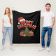 A soft fleece blanket printed with a bold “Merry Christmas” graphic, complete with Santa hat, decorated tree, and wrapped presents. Adds warmth and festive cheer to any room.
