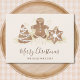 This Christmas card features watercolor cookies, gold festive greenery, and stylish script typography on a cream background.