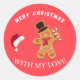 Merry Christmas Gingerbread Man with Santa Hat Vec Runder Aufkleber