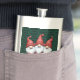 "This charming and rustic Christmas design features a detailed illustration of the back of a vintage red pickup truck. Peeking out over the tailgate are three festive gnomes, each wearing a large, textured red knitted hat and boasting a fluffy white beard. The hand-painted, slightly rustic style gives the design a cozy farmhouse aesthetic. This graphic is highly versatile for farmhouse Christmas decor, holiday garden flags, kitchen towels, seasonal apparel, or greeting cards."