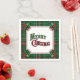 Beautiful Christmas paper napkins featuring a vintage-style "Merry Christmas" and a Christmas green plaid border with holly accents. Great for holiday table settings or holiday parties.