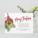 Dieses Design bietet eine fröhliche Weihnachtsfeiertagsgrün-Einladung mit botanischen Winterblättern, QR-Code-Website online text, Facebook Social Media-Veranstaltungsseite, Winterholzbeeren mistletoe, Aquarellrot und grünes Blattwerk, einen stilvollen Kalligraphie-Script-Schriftart, festliche Party-Feier, eine klassische klassische Urlaubsmalerei, ein Weihnachts-Party laden