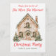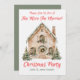 A Merry Christmas House Party Invitation designed with a cozy cottage house decorated for Christmas on a white background. The front text includes: Please Join Us For A, The More The Merrier! Christmas Party, along with the host names bright festive colors. The reverse text includes: The Date and Time, The Location Name and Address and your RSVP Details on a festive green background with a festive accent. To personalize, simply insert your party details into our easy template, replacing the sample text.