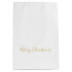 Say “Merry Christmas” (or your message) to all your family and friends this holiday season with this wonderful gift bag. White background and gold script text.