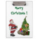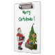 "MERRY CHRISTMAS" SANTA CLAUS UND ELF VOM CHRISTMAS BAUM MIT PRÄSENTEN