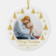 Celebrate Merry Christmas with a modern and simple keepsake Made to remain a beautiful memory. This gold and white ornament is perfect for a family photo, featuring elegant christmas trees and stars on a clean white background. Personalize it with a photo, name, greeting and year, an ideal gift for a Merry As A Mother, sibling, or loved one.