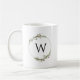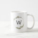 Customizable mug featuring a minimalist watercolor wreath with red floral and green foliage accents. This elegant wreath frames a custom monogram. Easy to personalize and makes a great gift.