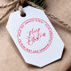 Erstellen Sie Ihre eigene MERRY CHRISTMAS Moderne Script Name Rücksendeadresse selbstfarbige Briefmarke. Dieses einfache, moderne Design zeichnet sich durch eine elegante kalligraphische Schrift aus, in der die Worte "Frohe Weihnachten" geschrieben werden. Ihr Familienname und Ihre Rücksendeadresse umkreisen die Botschaft anmutig in einer einfachen, modernen serifenlosen Schrift, die von einem doppelten, kreisförmigen Rand umgeben ist. Freuen Sie sich auf Ihre saisonale Korrespondenz!