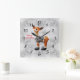 Merry Christmas moose wearing a hat Quadratische Wanduhr