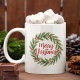 This classy and simple winter season mug features the timeless "Merry Christmas" text adorned with an elegant red and green holly wreath. The design allows for customization or personalization if desired. It makes for excellent drinkware, perfect for enjoying a nice cup of coffee, tea, or hot peppermint cocoa!