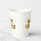 Fun festive paper cups with "Merry Christmas and a Happy New Year "on it. Lettering in a cheery red and green pattern outlined in gold. Great for holiday parties when getting together with family, friends or co-workers.