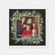 This Merry Christmas Photo Wreath Greenery Holiday Napkin features a photo of your choice surrounded by a wreath with holly and berries, pine branches, pinecones, and eucalyptus, with your names and year. This makes a wonderful addition to your Christmas party.