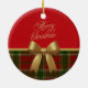 Add a touch of classic elegance to your tree with this beautiful Christmas ornament. Featuring a red and green plaid background, gold ribbon and bow, and festive “Merry Christmas” text, it’s the perfect addition to any traditional or modern holiday decor.