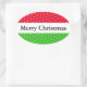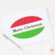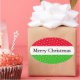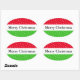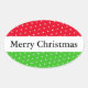 MERRY CHRISTMAS Red Green Dots Streifen Ovaler Aufkleber