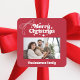 Merry Christmas red hand-drawn bow retro photo Quadratischer Aufkleber