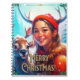 MERRY CHRISTMAS REINDEIN MIT GLÜCKLICHEM MÄDCHEN NOTIZBLOCK