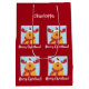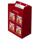 Moderne Weihnachtsgeschenktasche für Kinder, mit Rudolph dem Rentier, dem Gruß "Frohe Weihnachten" und einem personalisierten Namen. Auf einem Weihnachtsrot.