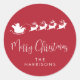 Vergnügen Sie sich mit einem saisonalen roten Aufkleber für Ihre Weihnachtskarten und Korrespondenz mit einer weißen Silhouette von Rentieren, die den Schlitten des Weihnachtsmanns durch die Luft fliegen, "Frohe Weihnachten" in einem stilvollen weißen Drehbuch und Ihrem Namen in schlichter, moderner Weißtypografie.