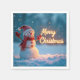 A cheerful snowman illuminated by a vibrant "Merry Christmas" neon sign, all while delicate snowflakes gracefully fall around it, creating a magical holiday atmosphere