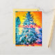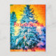Postkarte mit MERRY CHRISTMAS Gruß über mein farbiges Foto schneebekleideter Evergreens in Wolverine Lake, MI