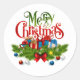 Celebrate the magic of Christmas with this vibrant holiday sticker featuring a lush pine garland adorned with colorful ornaments, wrapped gifts, and a bold red bow. The cheerful "Merry Christmas" message in festive green and red adds warmth and joy to any gift, card, or seasonal packaging. Perfect for holiday wrapping, party favors, or spreading seasonal cheer.