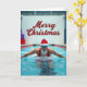This Christmas card shows Santa Claus having a lot of fun! 🏊♂️🎅🏼 He looks happy and ready to make a splash, which makes the card feel lively and cheerful. Bright colors and his big smile make it impossible not to smile back. The words “Merry Christmas” are written in red glittery letters that really stand out on the white background. The card mixes classic holiday elements with a fun, sporty twist. It’s playful and full of energy, perfect for spreading holiday cheer. 🎄🎁