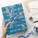 White MERRY CHRISTMAS Text mit Lebkuchenmännern und Schneeflocken auf aqua-blauem Hintergrund. Text kann bearbeitet werden. Die Hintergrundfarbe kann geändert werden.