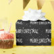 White MERRY CHRISTMAS Text mit Schneeflocken auf schwarzem Hintergrund. Text kann bearbeitet werden. Die Hintergrundfarbe kann geändert werden.
