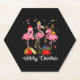 Merry Christmas Three Flamingo With Santa Hat Untersetzer