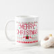The mug features your charming, cozy, cross-stitch MERRY CHRISTMAS "Ugly Sweater" graphic on the front and back.