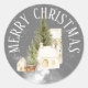 MERRY CHRISTMAS Winterhaus mit Evergreen Runder Aufkleber