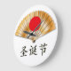 Merry Christmas with Golden Fan Große Wanduhr