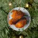 Funny food pun Weihnachtsgeschmack. Realistisches Foto von gebratenem Huhn und das Zitat "Merry Cluckin" Christmas."