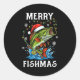 Merry Fishmas Santa Fishing Lovers Funny Fisherman Runder Aufkleber
