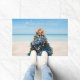 Feiern Sie die Feiertage mit diesem herrlichen Weihnachtslokal zum Thema Tropen. Das Design ist ein Foto eines atemberaubenden Weihnachtsbaumes, der während der jährlichen Ausstellung der Bäume im Kunstmuseum von Orlando gezeigt wird. Der schöne Urlaubspalast ist mit an der Küste inspirierten Dekorationen wie Seestern, Miniaturmädchen, in Pastellfarben gehaltene Zierbälle in Blau, Grün und Elfenbein sowie einem großen Fisch mit Korallenbäumen für den Baumhupf geschmückt. Der Hintergrund ist eine ruhige Strandlandschaft. Der Text lautet "Frohe Weihnachten in Florida". Bitte stöbern Sie in unserer kompletten Kollektion von Ferienkarten und Geschenken zum Thema Küste, Tropen und Florida. Besondere Designwünsche akzeptiert. (Fotografie und Design von Glenda Motsavage)