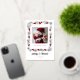 Eine moderne, süße Baby-Ankündigung Urlaubskarte mit einem winterlichen Laub-Thema, mit einem skurrilen, handgezeichnet, quadratischen botanischen Rahmen von Winterbeeren und roten Herzen, über die Fotoplatte auf der Vorderseite und den Titel "fröhlich und gesegnet" in echter Folie.