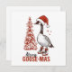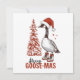 Das niedliche "Merry Goose-mas"-Design zeigt eine niedliche Gans, die einen Hut des Weihnachtsmanns, rote Stiefel und einen Weihnachtsbaum im Hintergrund trägt. Dieses farbenfrohe und auffällige Weihnachtsdesign ist ein schönes Weihnachtsgeschenk für jeden, der Gänse, Tiere und lustige Weihnachtsbilder mag.