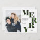 Mit einem typografischen rustikalen, grünen und schwarzen Büffel kariert / karierten Musterwort "MERRY" in einer halbkreisförmigen Anordnung enthält diese moderne Gingham-Karte einen großen senkrechten Platz auf dem verlassen für Sie besten portrait Foto und schwarzen Text, der personalisiert werden kann. Mit dieser rustikalen, noch modernen Grußkarte können Sie sich leicht anpassen und einen großen Eindruck machen. Die Farbe Grün lässt sich leicht an das Foto anpassen.