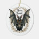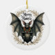 Bring a touch of spooky elegance to your holiday celebrations with this charming gothic bat ornament. Depicting a bat draped in a festive wreath with "Merry Haunts" above, this design is perfect for those who appreciate the whimsical yet eerie side of the season. Add a unique gothic flair to your tree or give it as a gift to fellow fans of the dark and mysterious.