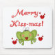 Ein niedlicher, grüner Frosch mit großen, rot kissbaren Lippen und rotem Text, der "Fröhliche Kiss-mas!" auf Urlaubskarten, Totentaschen, Tshirts, Tasse und vielem mehr liest.