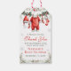 This adorable Merry Little Baby Shower Santa Clothesline Thank You Gift Tag features a Christmas clothesline with Santa-inspired baby clothes with Santa Hat, red and white body suit, socks, and a Christmas stocking. Add your details for a baby shower to remember!