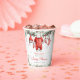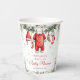 This adorable Merry Little Baby Shower Santa Clothesline Paper Cup features a Christmas clothesline with Santa-inspired baby clothes with Santa Hat, red and white body suit, socks, and a Christmas stocking. Add your details for a baby shower to remember!