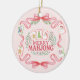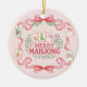 This chic design features a ribbon frame with mahjong tiles and a phrase that says "merry mahjong."