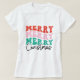 Weihnachten T - Shirt mit Retrostil rot, rosa, aquamarin und schwarz liest Merry Frory Frory Christmas!