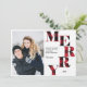 Mit einem typografischen rustikalen roten und schwarzen Büffel kariert / karierten Musterwort "MERRY" in einer halbkreisförmigen Anordnung enthält diese moderne Gingham-Karte einen großen senkrechten Platz auf dem links für Sie besten Portrait Foto und schwarzen Text, der personalisiert werden kann. Mit dieser rustikalen, noch modernen Grußkarte können Sie sich leicht anpassen und einen großen Eindruck machen. Rote Farben können leicht an Ihr Foto angepasst werden.