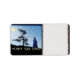 Weibliche Figur in gedeckter Mandel auf einem Hügel mit Vollmond, goldenen Sternen und einem einsamen Winter immergrün. Die Worte wünschen Ihnen einen "Frohen Frieden".
