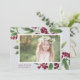 Versenden Sie Ihre Urlaubstage mit unseren eleganten Fotokarten an Freunde und Familie im schicken Stil. Die Fotos werden von hübschen, farbenfrohen Pflanzen und tiefroten Beeren umgeben. Der Gruß (mit "Happy Holidays" gezeigt) und der Familienname (die Familiennamen) sind in der unteren links Ecke versteckt. Karten kehren zurück, um ein passendes botanisches Wintermuster zu erkennen.