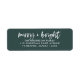 Diese modernen und stilvollen Weihnachtsfeiertage-Rücksendeadressen-Aufkleber sind mit "fröhlich + hell" in lässigem, trendigem, weißem Schriftsatz auf boho-grünem Hintergrund gekennzeichnet.